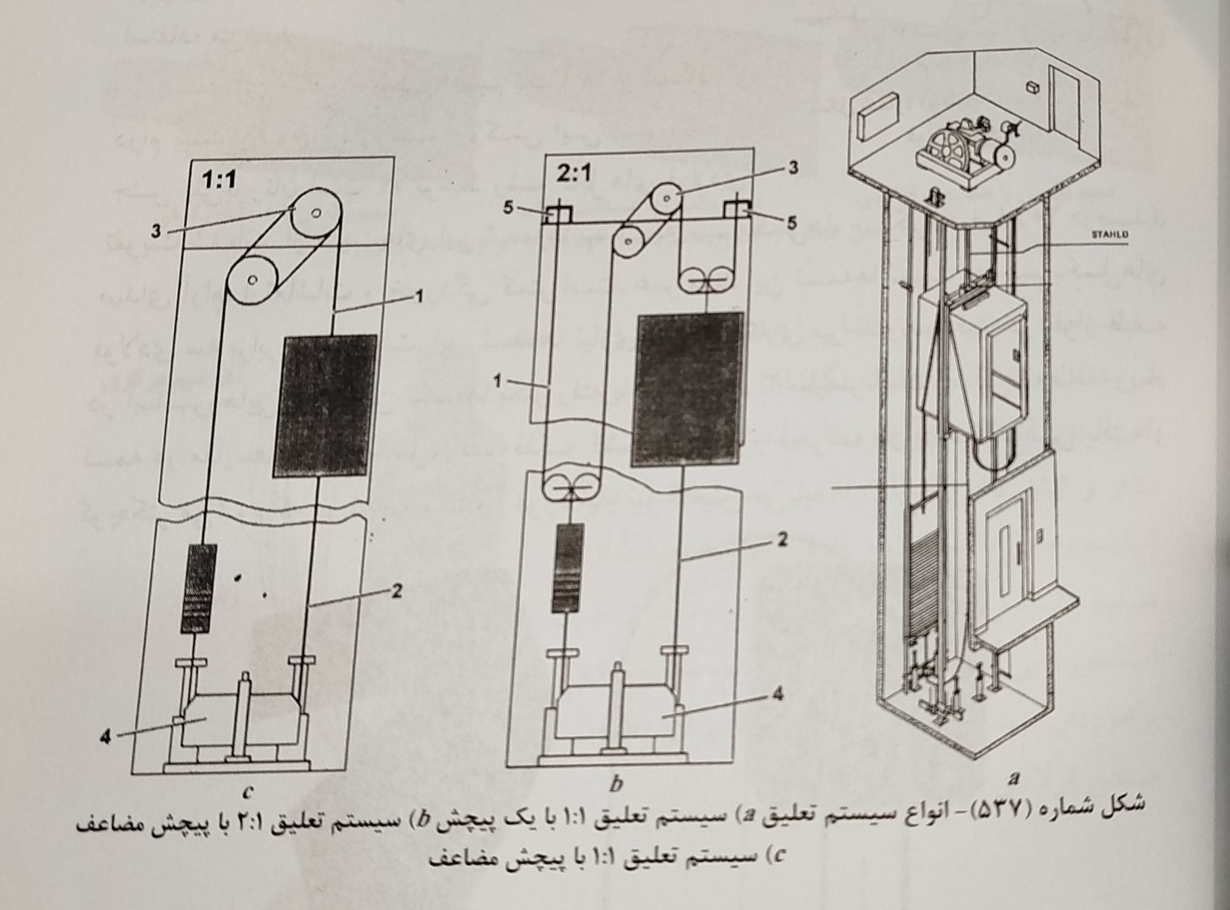 15 - سیم بکسل های تعلیق، گاورنر و جبرانی به کمک انواع سربکسل ها به یوک کابین یا قاب وزنه متصل شده و بسته می شوند.