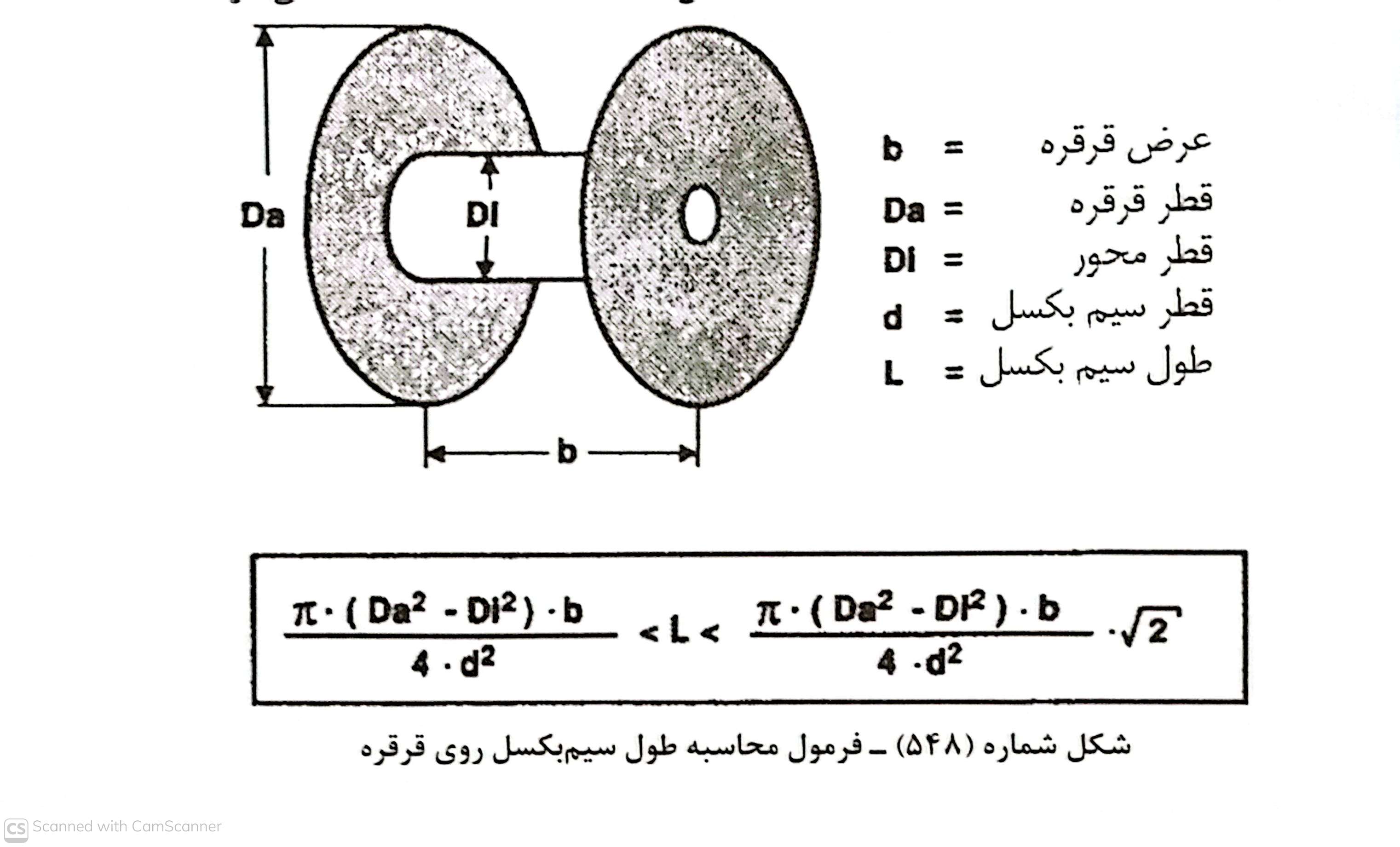 طول سیم بکسل قرقره طی فرمول مطابق محاسبه می گردد.