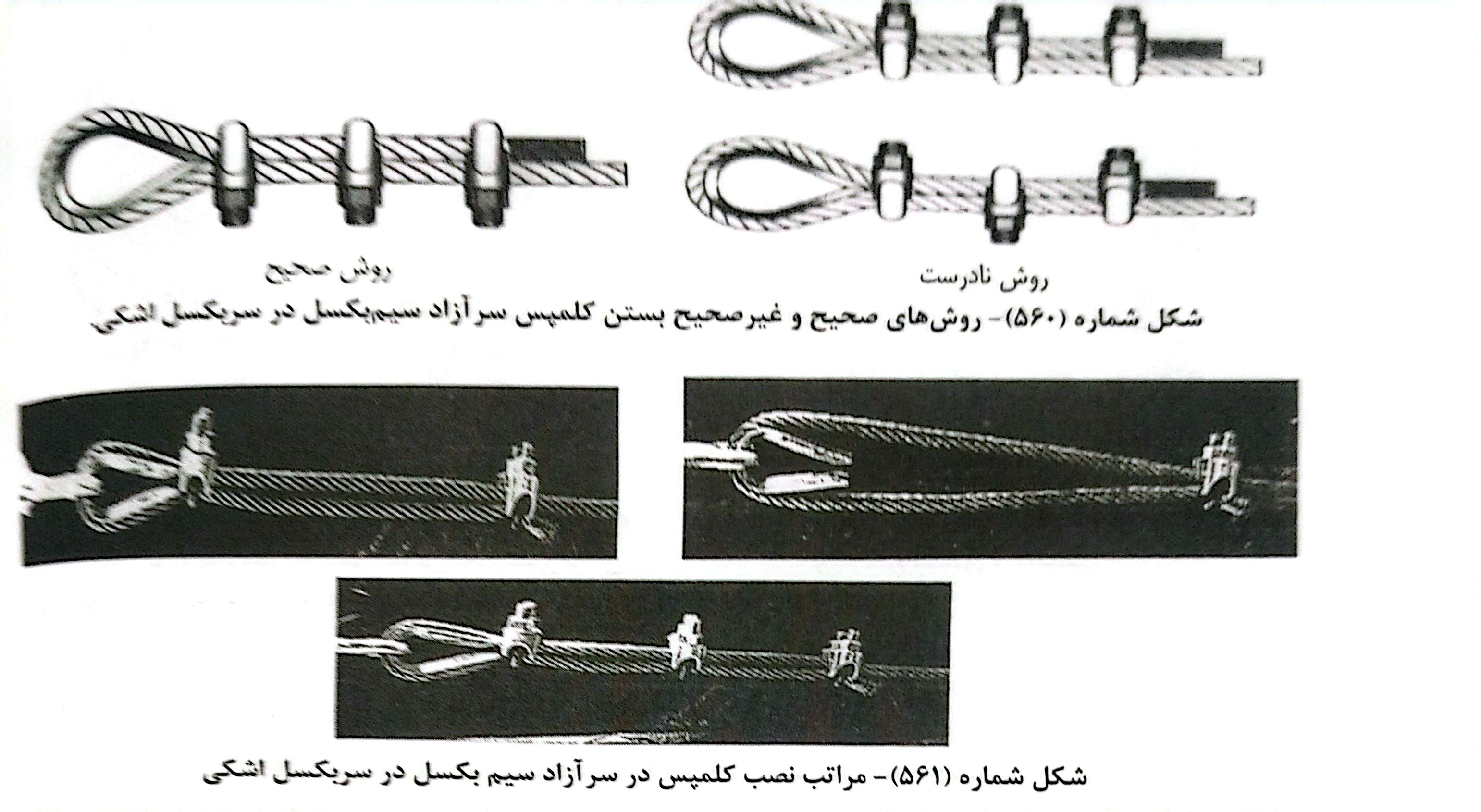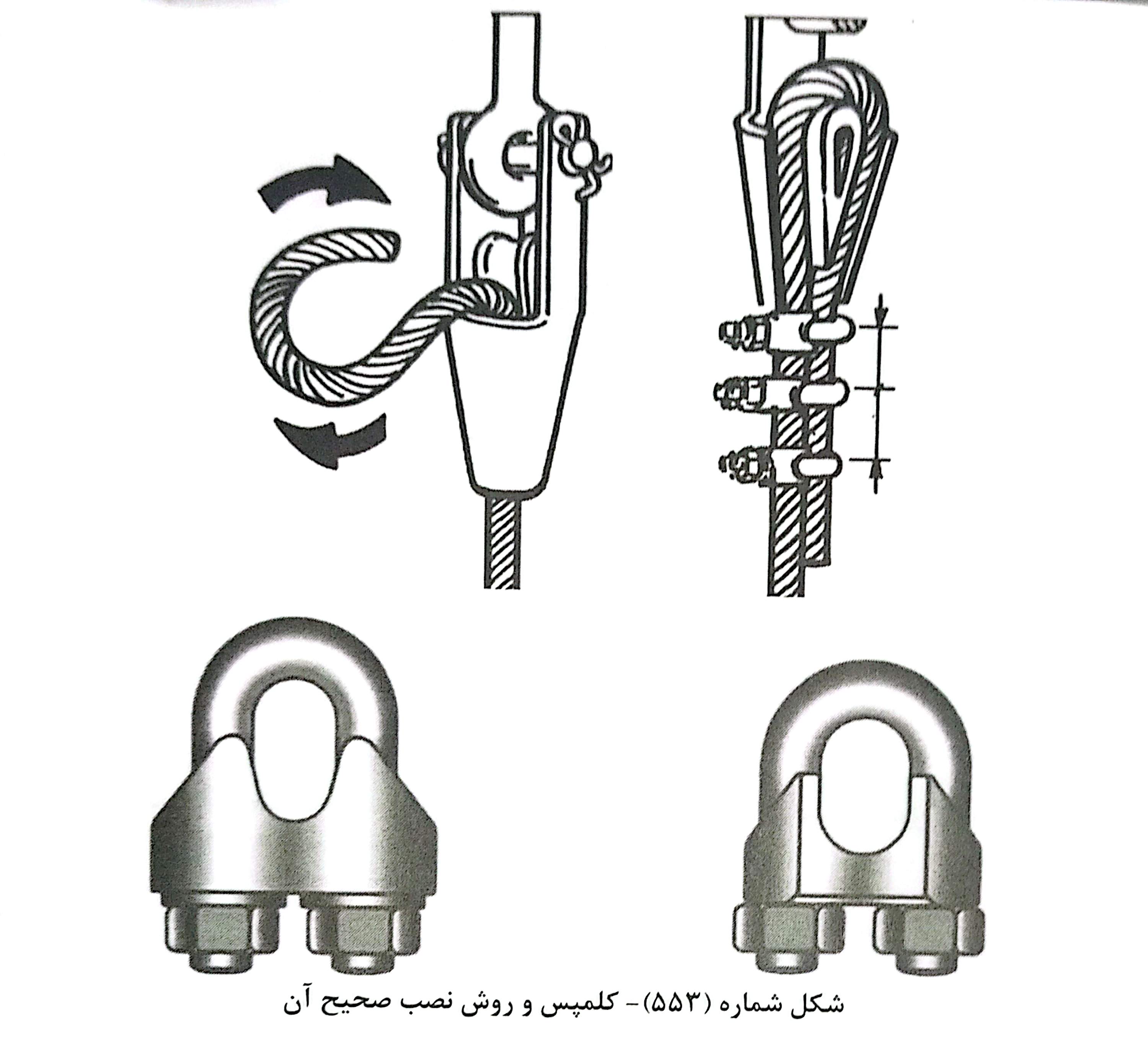 از طرفی دقت شود محل خم سیم بکسل در روی گوه اشکی گوه در سمت سیم بکسل آزاد (مرده) باشد در غیر این صورت به دلیل خم وارده بر سیم بکسل (زنده) و حرکت آن در هنگام تغییرات بار وارده و تنش خمشی خطر پاره شدن آن نیز افزایش می یابد.