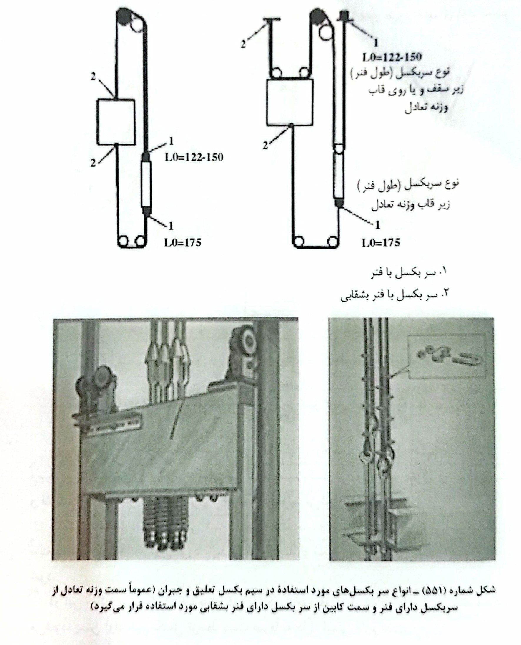 رعایت فاصله کم اولین بست (طبق اندازه های داده شده) تا گوه جهت خارج نشدن اشکی از داخل گوه در صورت شل شدن سیم بکسل در هنگامی که کابین و یا وزنه تعادل روی بافر می نشیند الزامی است.