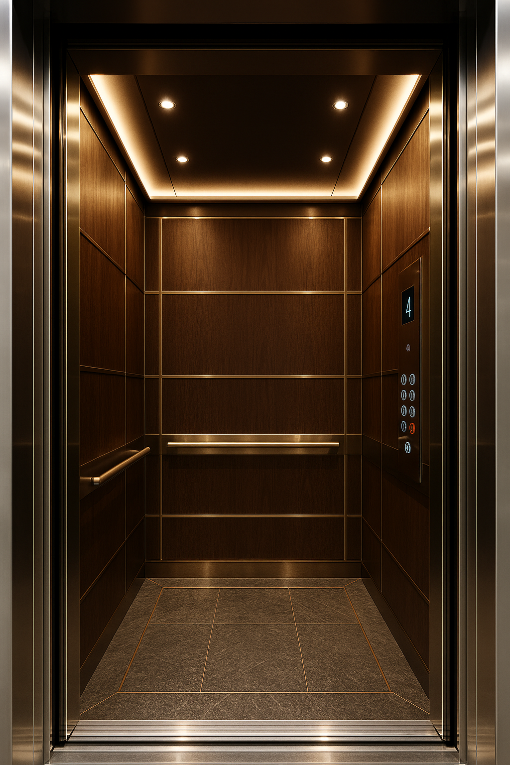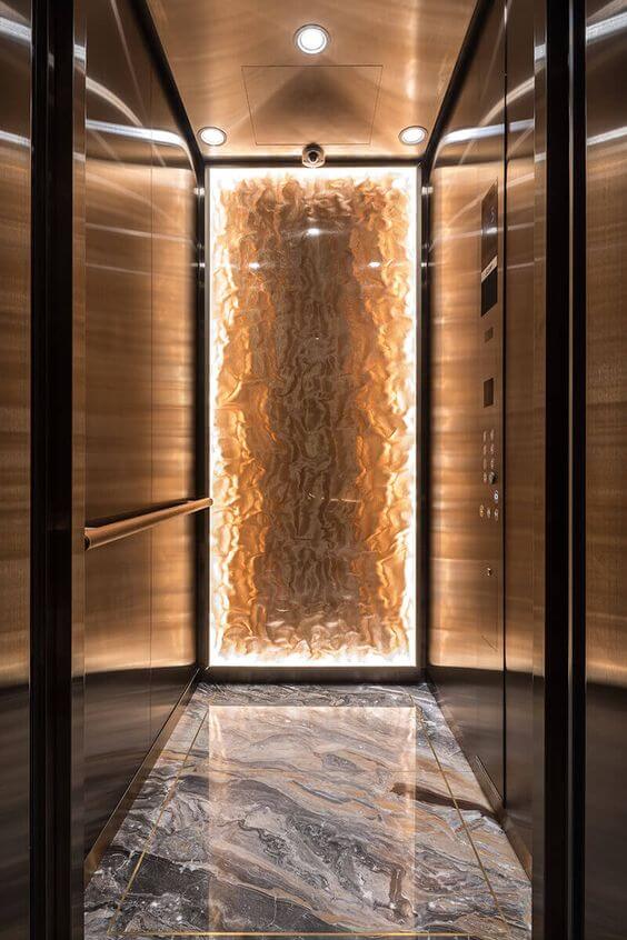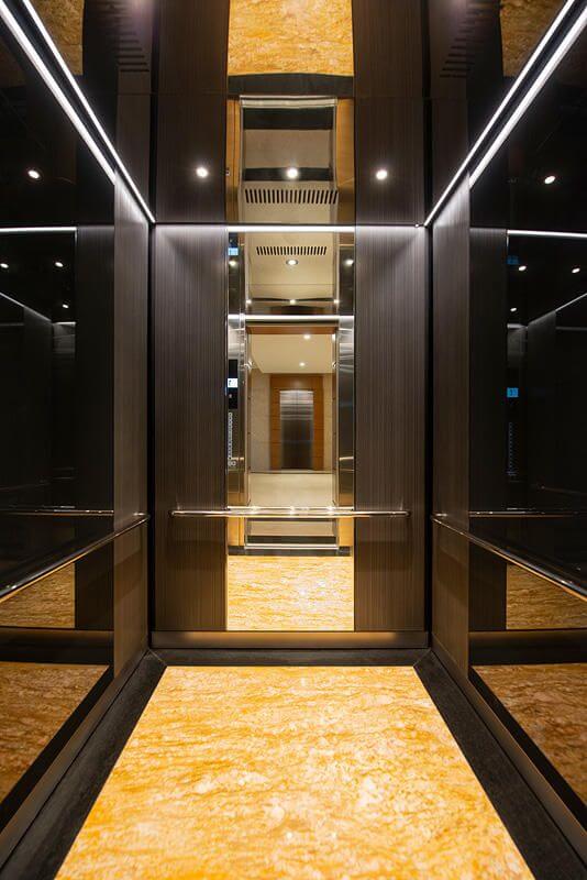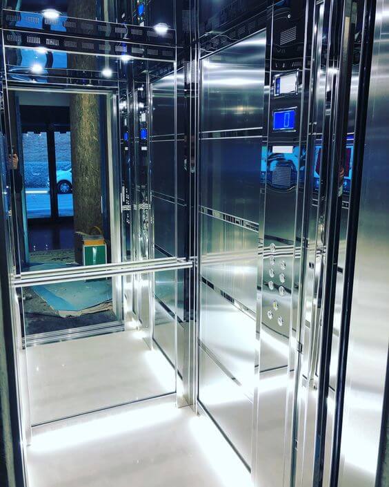 2 - در آسانسورهای حمل مسافر، درو اتاق کابین در حقیقت بخشی از ساختمان محسوب می شود و باید با طرح تزئینی داخل بنا نیز هماهنگ باشد.